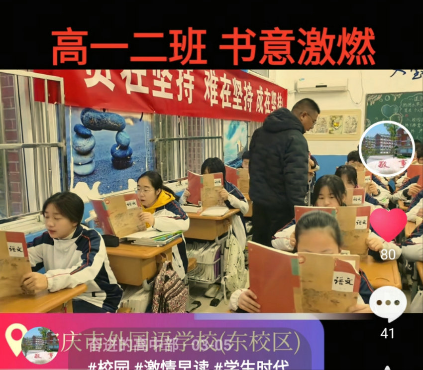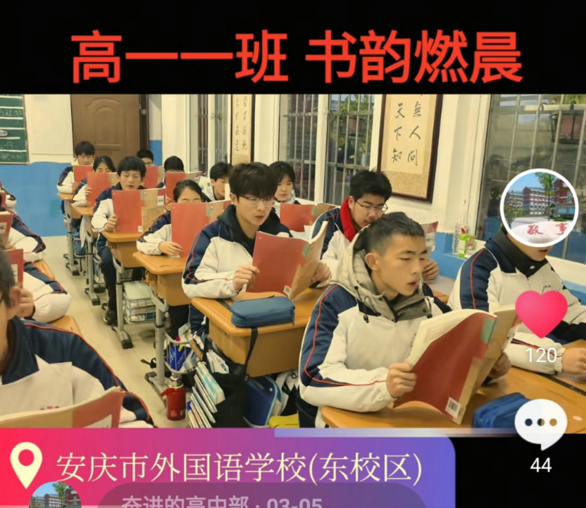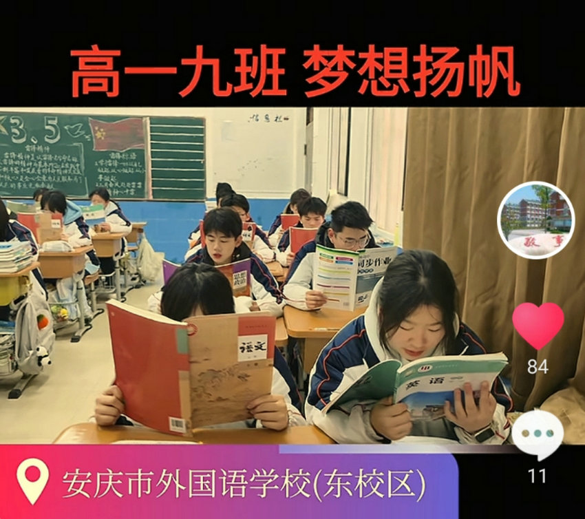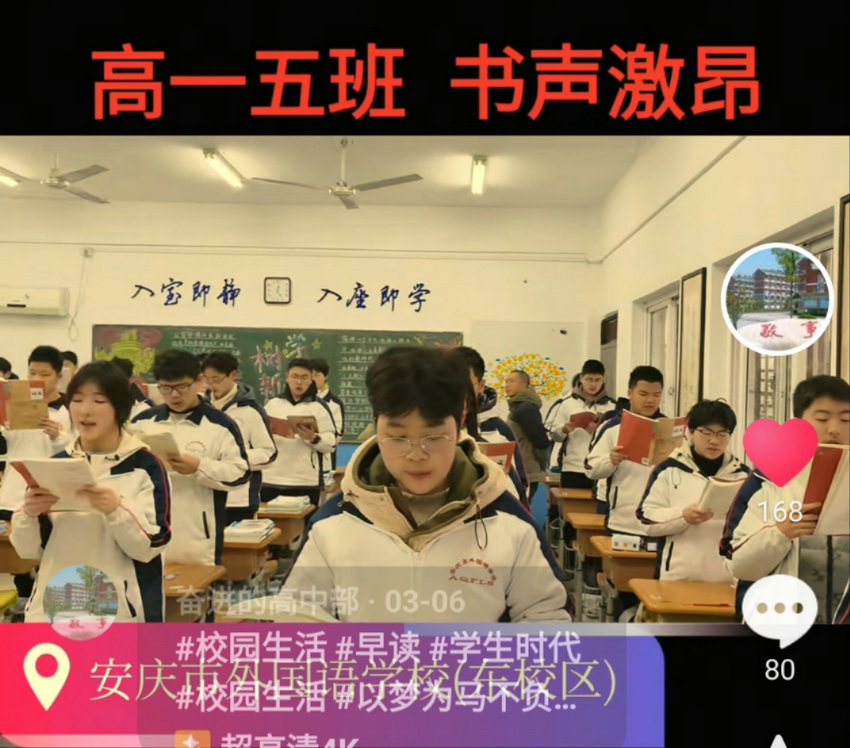 活动期间,高一年级的教室里每天都充满活力。同学们精神抖擞,以饱满的热情投入早读,有的班级齐声诵读气势如虹,有的班级分角色朗读生动有趣。各班精心录制的早读视频发布在抖音平台后,迅速吸引了大量关注,师生、家长们纷纷为心仪的班级点赞助威。
