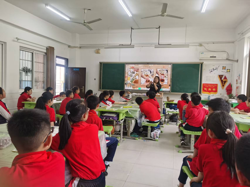 活动期间,五年级以班级为单位开展《本草纲目》共读活动。语文课上,老师们精选书中关于常见草药的记载,带领学生品读李时珍"远穷僻壤之产,险探仙麓之华"的治学精神,师生们共同探讨草药的生长习性和药用价值。