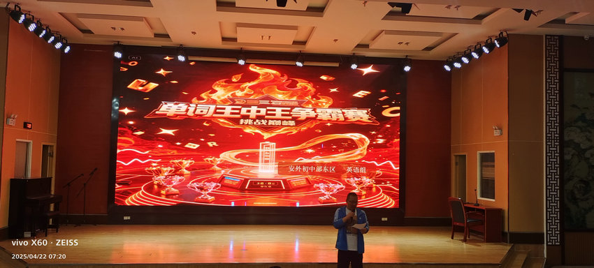 2025年4月22日上午,安庆市外国语学校初中部东区“单词王中王争霸赛”在热烈紧张的氛围中圆满结束。本次比赛旨在激发学生学习英语的热情,提升词汇量与语言综合运用能力,展现了初中部学子们扎实的英语功底与积极向上的精神风貌。