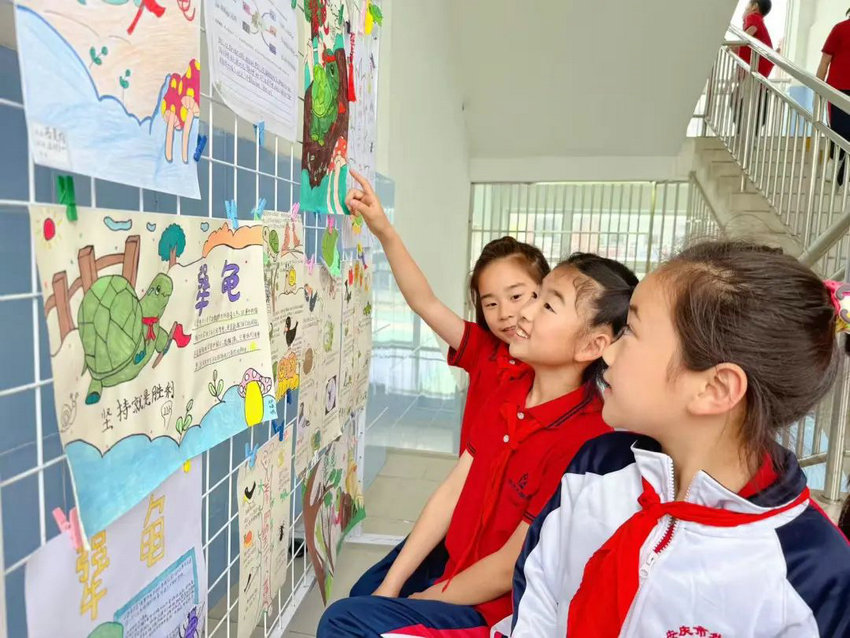 当阳光洒满教室的窗台,三年级的孩子们翻开《犟龟》这本充满哲理的童话书,一场关于勇气与坚持的探索之旅就此启程。这场展览不仅是孩子们创作成果的展示,更是“犟龟”精神的传递。它让每一个参与其中的孩子都深刻体会到坚持的力量,也在他们心中种下了一颗勇敢追梦的种子,相信在未来的日子里,这颗种子会在“犟龟”精神的滋养下,生根发芽,绽放出绚丽的花朵。