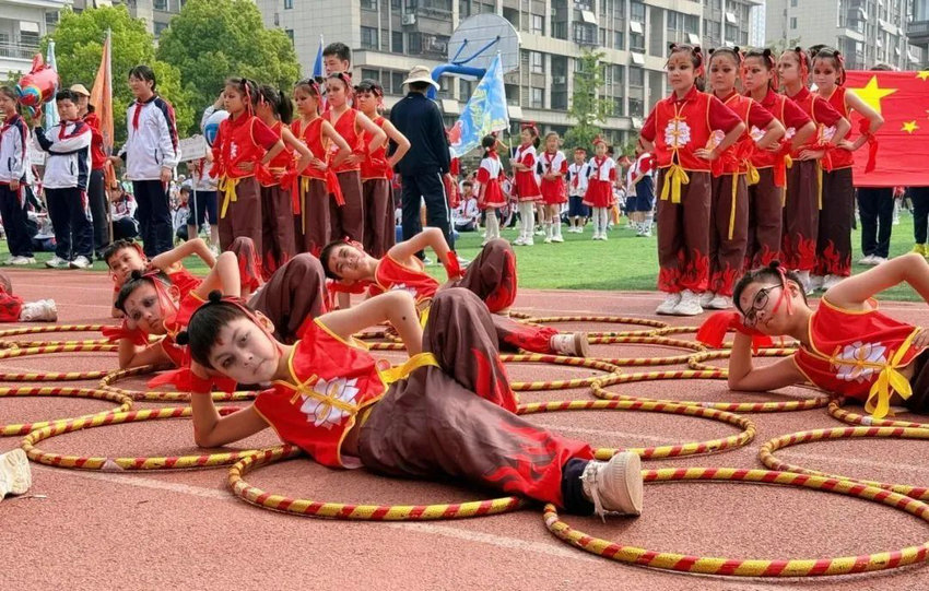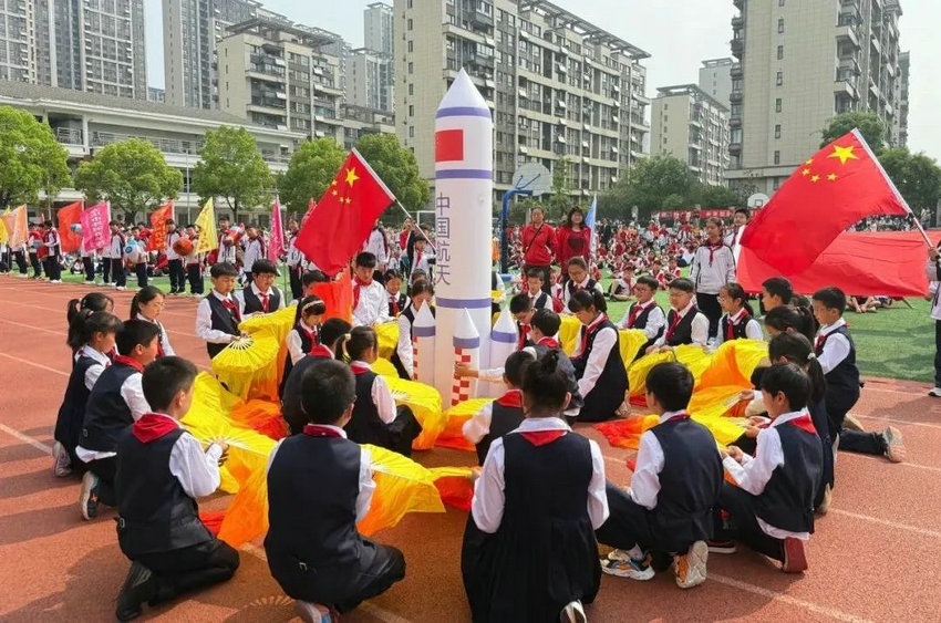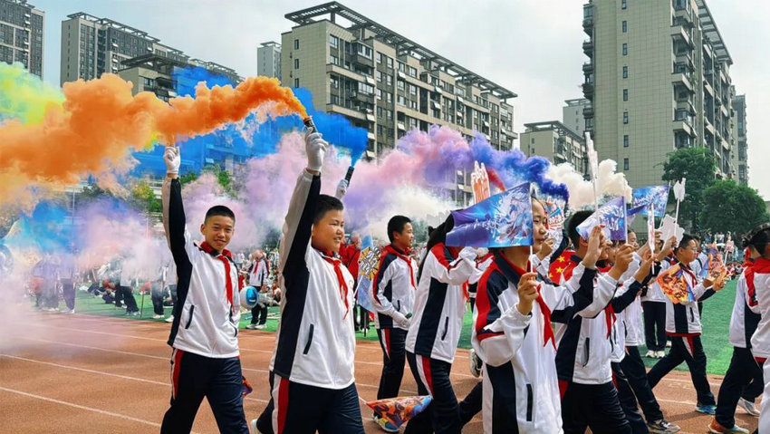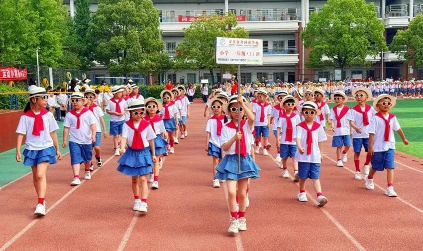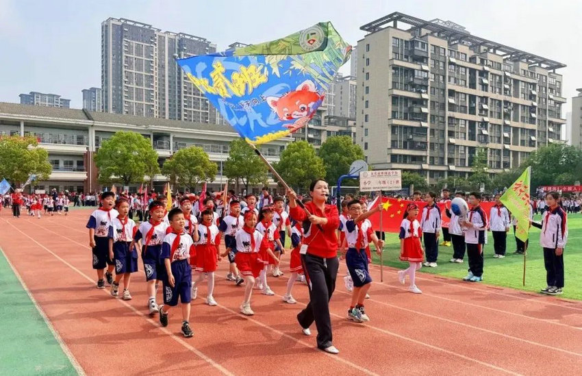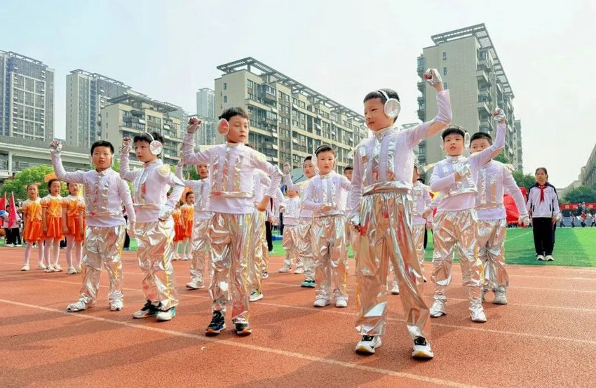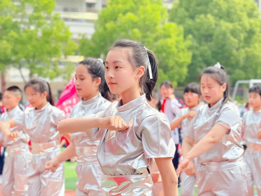 开幕式在激昂的入场仪式中拉开帷幕。国旗队与校旗队步伐铿锵,引领着彩球队、彩旗队、班级代表队和裁判员队依次入场。每个方阵都精神抖擞,尤其是年级特色方阵的孩子们,他们以“ai科技”为主题,用创意服饰、智能道具和动感音乐,在主席台前展示了精彩表演,引得全场掌声雷动。