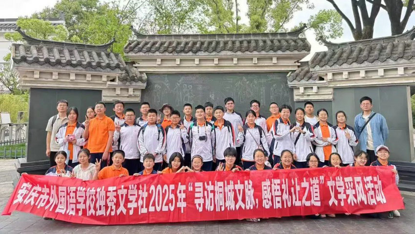 读万卷书,行万里路。2025年5月10日,我校小学部、初中部独秀文学社同学和高中出国班师生近200人赴桐城开展采风活动。通过探访六尺巷,了解“一纸书来只为墙,让他三尺又何妨”的历史典故,感悟中华传统美德;参观桐城文庙和博物馆,寻访桐城文脉,感受桐城深厚文化底蕴;在双溪村茶园体会徽茶文化,亲近美好自然。此次活动,让学生在课堂之外拓展视野,以研促学,丰富知识,提升学生的创新精神和实践能力,锻炼学生观察力与写作能力,并在活动中培养对家乡文化的认同感。