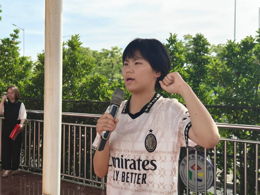 李校助发表开幕词,她阐述了本次足球赛的意义与体育精神。足球赛不仅是一场竞技的较量,更是培养学生团队协作、坚韧不拔精神的重要契机。她寄语运动员们赛出风格、赛出水平,也期望裁判员们公正执裁,最后预祝赛事圆满成功。