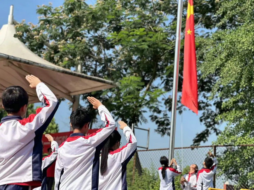 清晨,阳光洒在校园的每一个角落,鲜艳的五星红旗在微风中飘扬。全体师生整齐列队,伴随着激昂的国歌,升旗仪式正式开始