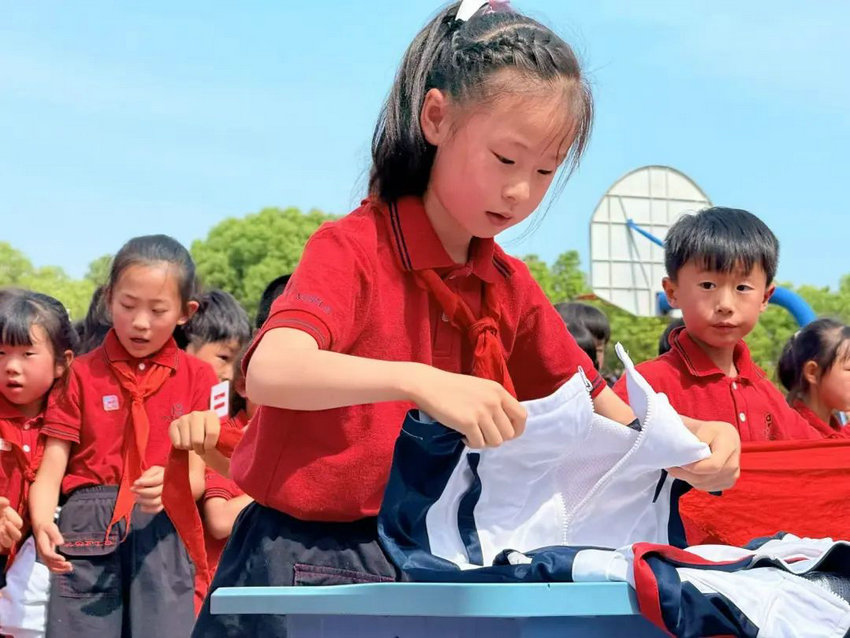 为激发小学生主动参与劳动的积极性,养成热爱劳动的好习惯,提升动手能力,锻炼学生的基本生活自理能力,如整理书包、系鞋带、叠衣服等,此次小学部特开展低年级劳动技能大赛,帮助他们在日常生活中更好地照顾自己,增强自理能力。