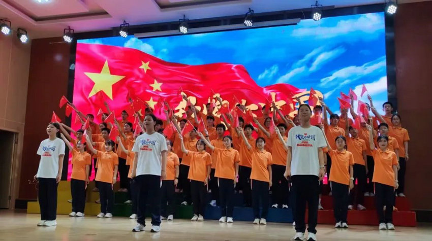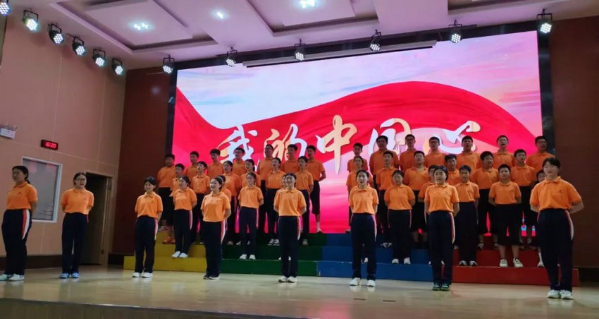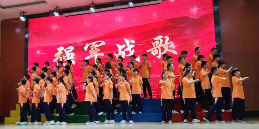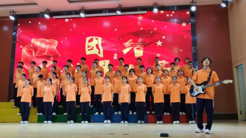 同学们用歌声诠释对英雄的敬仰、对国家的忠诚,唱出精忠报国的壮志豪情;用歌声传递强大能量,唱出军人的铁血担当和保家卫国的坚定信念;用歌声描绘祖国的幅员辽阔、山河壮美,展现身为中国人的骄傲与自豪……