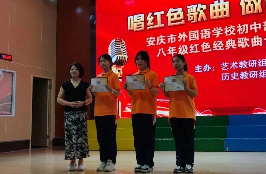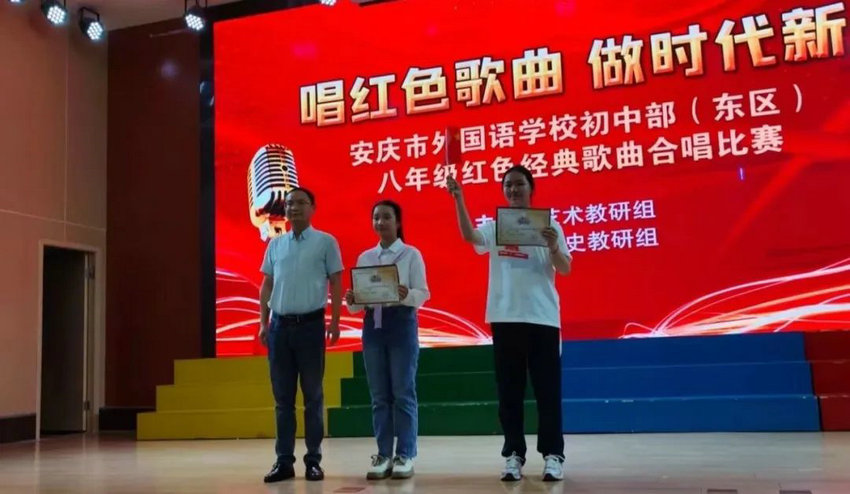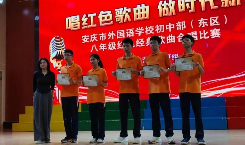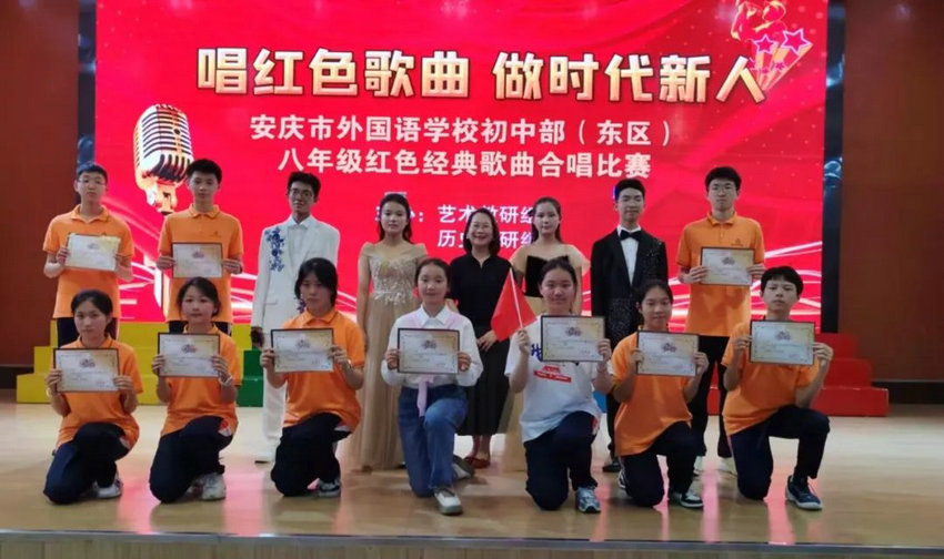 歌曲颂祖国,青春展风采。一支支红歌,或铿锵有力,或婉转悠扬,唱出了安外少年的蓬勃向上,也唱出了他们的信念与坚定。现场同学们挥舞手中的国旗,共同感受红歌的魅力与力量。