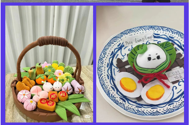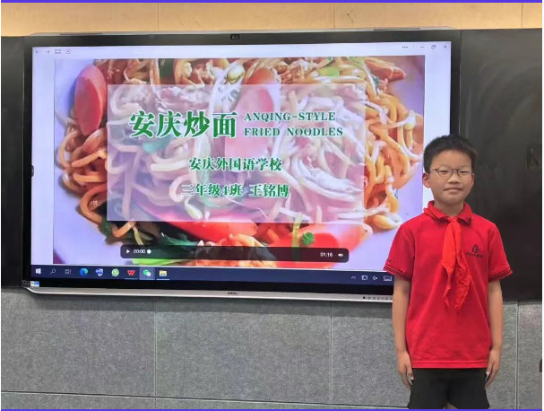 三年级的同学们在老师的指导下用英文介绍中华美食,自制美食教具。