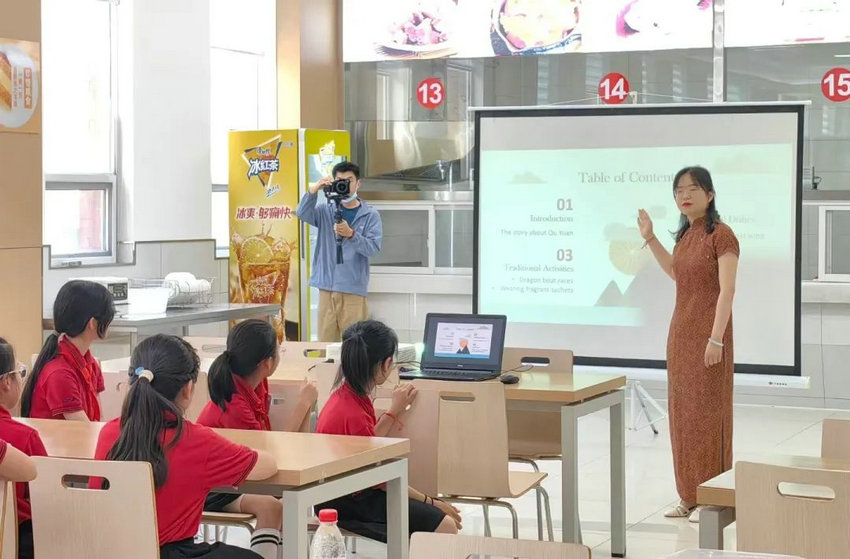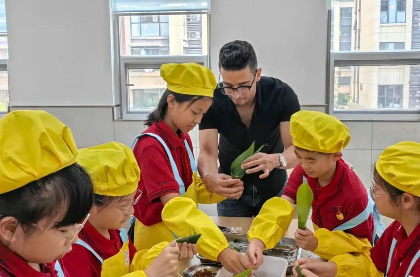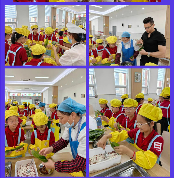 端午特色活动中,外教老师教学生用英语介绍端午节,包粽子环节为学生提供了互相学习的机会,也为学生提供了一个展示英语口语的平台。