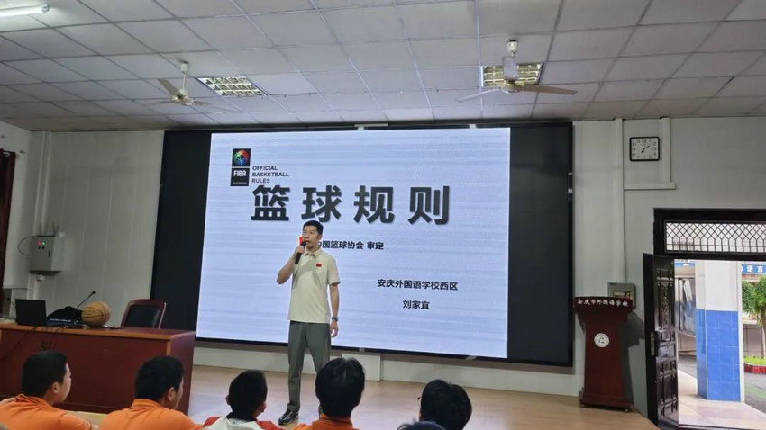 刘家宜老师从基础规则、战术技巧、体能训练等方面展开讲解,提升了同学们对篮球的认知水平。
