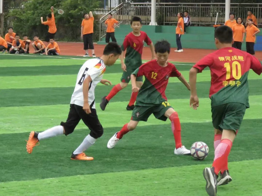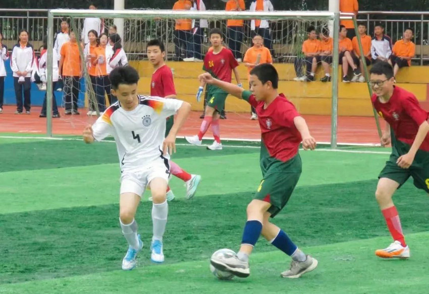赛场上,七八年级的球员们各展风采。七年级的小将们初生牛犊不怕虎,凭借灵活的跑位和迅猛的进攻,一次次威胁对方球门;八年级的学长们也毫不示弱,稳扎稳打,以精湛的配合和老道的防守化解危机。球员们在绿茵场上飞驰,他们身姿矫健,或带球突破,风驰电掣般甩开防守球员;或精妙传球,与队友默契配合;或奋不顾身地倒地铲球,全力守护己方球门。每一次进攻都扣人心弦,每一次防守都惊心动魄。赛场上,汗水湿透了衣衫,但球员们的热情丝毫不减。各班的啦啦队们不遗余力地为自己的班级加油助威。热情的欢呼为球员们注入无限动力,这一刻,班级的凝聚力在绿茵场上得到了最完美的展现。
