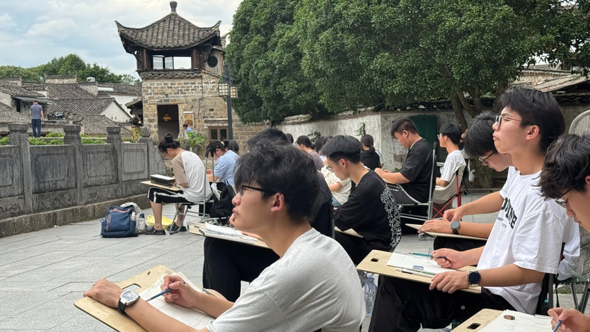 为培养美术生感知美、发现美、创造美的能力和素养,6月19日清晨,我校高中部美术班精心组织了户外写生实践。在张诚、未磊和刘帅康三位老师的带领下,全体高二美术生满怀憧憬和期待,奔赴皖南古村落查济。这座保存完好的明清建筑群落,以其错落有致的马头墙、蜿蜒的溪流、古朴的石板巷和层叠的青瓦屋檐,为学生提供了绝佳的自然与人文写生课堂。师生们将在此开展为期一周的沉浸式写生活动,通过实地观察、速写捕捉和色彩表现,深入体悟传统建筑美学精髓,积累鲜活创作素材,切实提升艺术表现力与审美品位。