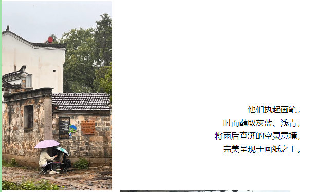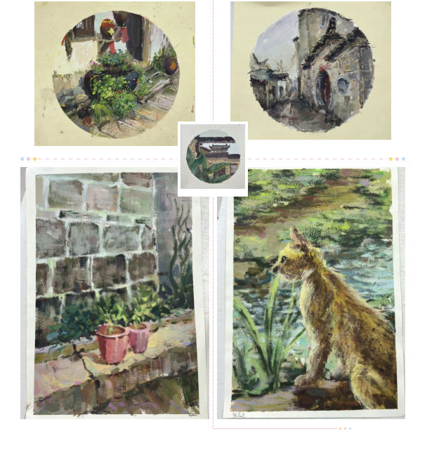 即使细雨绵绵,也丝毫未减同学们对古镇美景的向往。回首凝望间,那些动人的景致早已深印心间。回到温暖的室内,同学们便迫不及待地用画笔将这份美好永久定格。