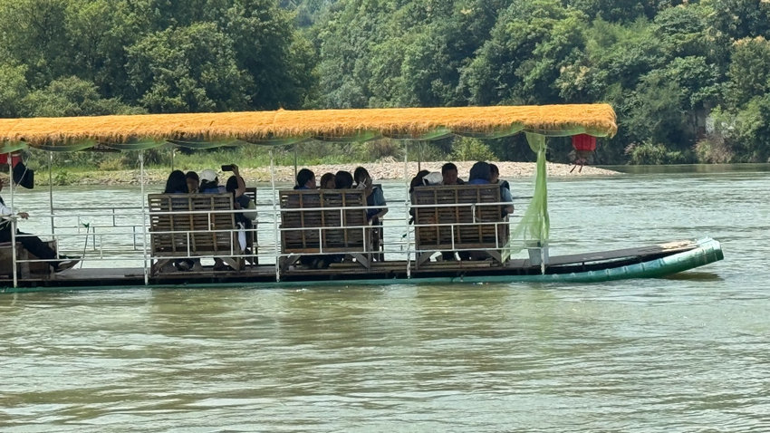 返程前的石板路还沾着晨露,少年们已奔向桃花潭。竹筏劈开镜水时,白鹭惊起的翅尖掠过垂落的桃枝,碎金般的波光在指缝间漏成银线。青峦倒影被竹篙揉作绿绸,争渡的笑声惊碎涟漪,将画纸上未干的淡彩,全溶进潭水悠悠的暮色里。