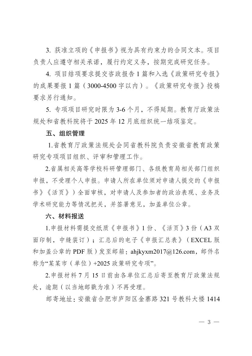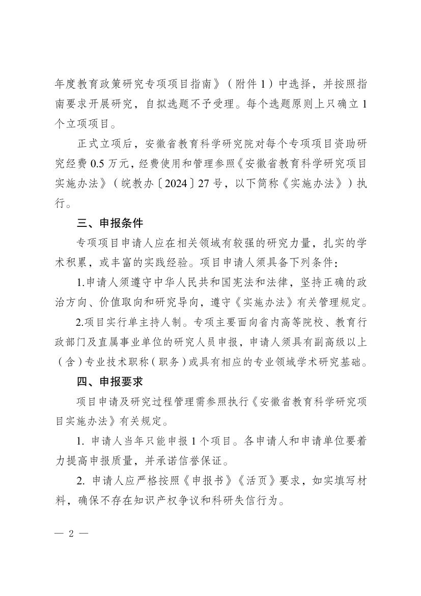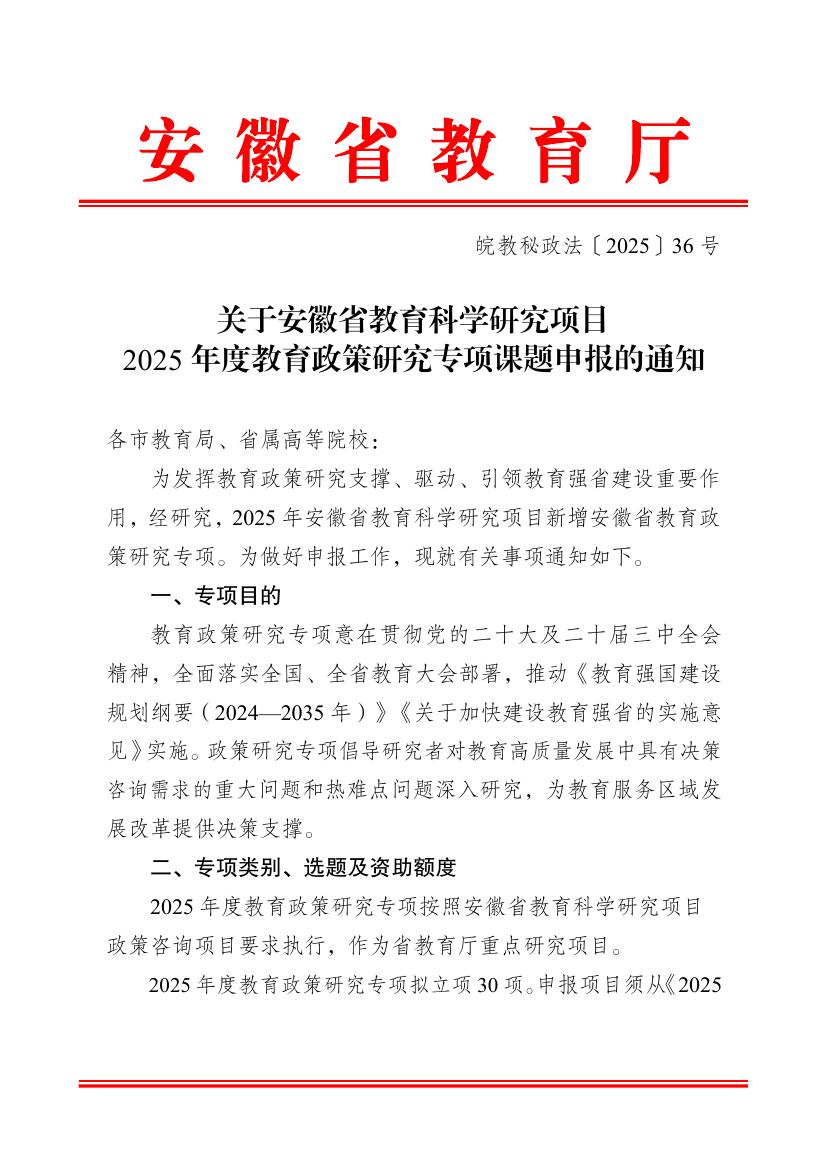 关于安徽省教育科学研究项目2025年度教育政策研究专项课题申报的通知 -九游会官网登录入口网页
