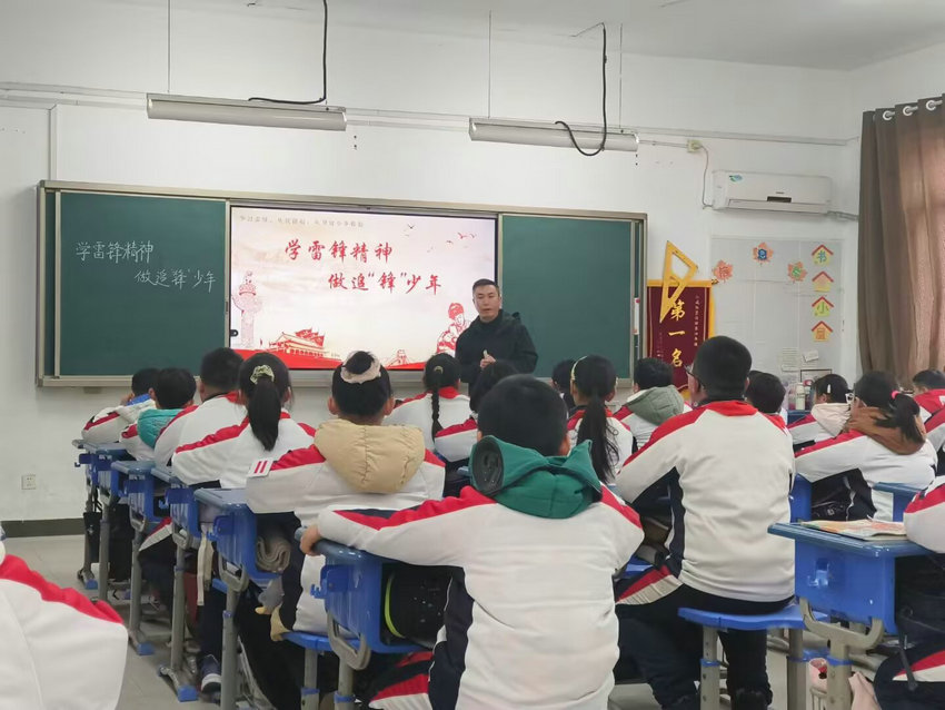 二是开展“学雷锋”主题团队会活动 各班级召开主题班会,通过主题班会介绍雷锋生平事迹,阐释雷锋精神内涵,重温雷锋经典语录,让学生感受“钉子精神”的教育,领悟“为人民服务”的真谛。组织开展“雷锋精神”黑板报评比。