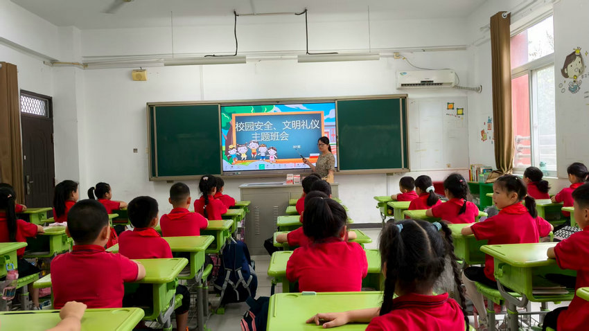 此次班会课老师们利用精美的ppt、生动的动画视频,向同学们深入浅出地讲解了什么是文明礼仪、为什么安全最重要。从“您好”、“谢谢”等礼貌用语,到课堂纪律、队列秩序;从校园内的课间活动安全,到上下学的交通安全,内容涵盖了学生们校园生活的方方面面。