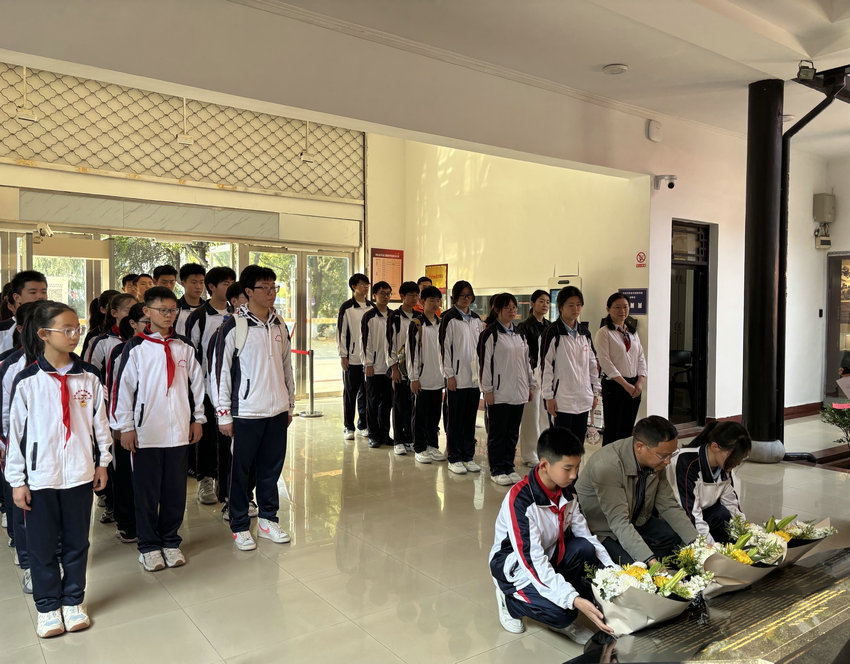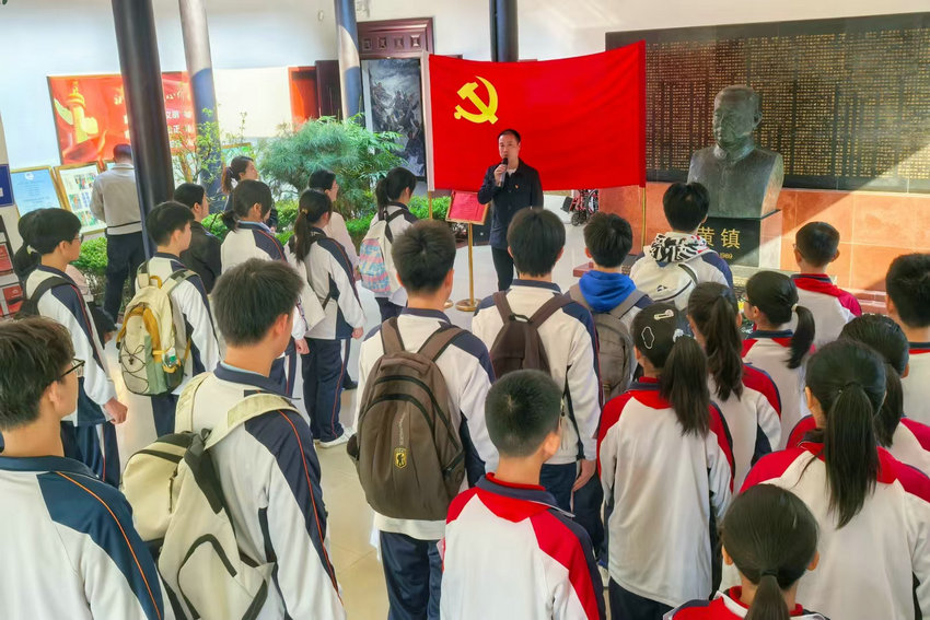 为全面落实全国两会关于教育工作的新部署,新要求,进一步弘扬爱国主义精神,根据校党总支统一安排,2025年3月26日上午,我校组织党团员、少先队员代表共40余人赴黄镇生平事迹陈列馆,开展了“红色记忆 清明追思”主题教育活动。