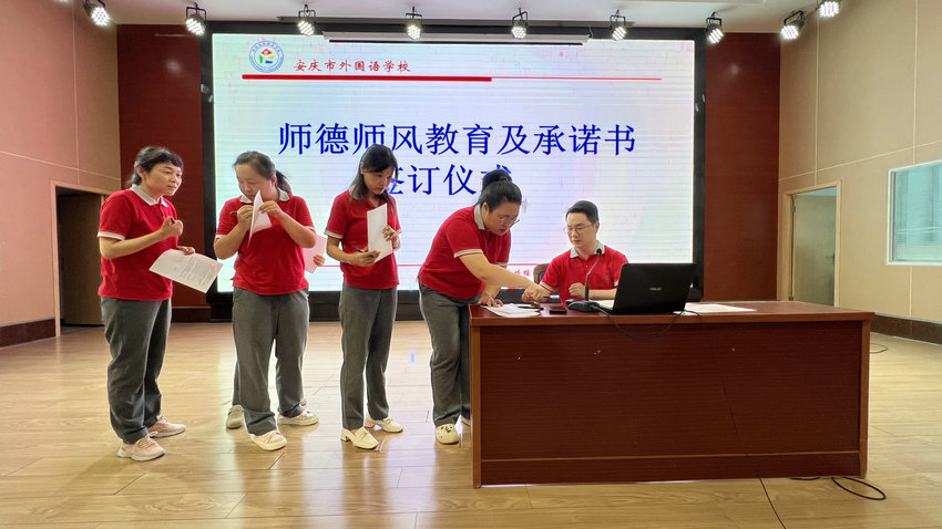 签订过程中,老师们依次在承诺书上签下自己的名字。落笔的每一个字,不仅代表着大家对教师职业规范的充分认可与自觉遵守,更意味着全体教师再次郑重锚定 “教书育人” 的初心 —— 始终以高标准要求自己,将师德师风融入教育教学的每一个环节,用实际行动践行对教育事业的承诺。