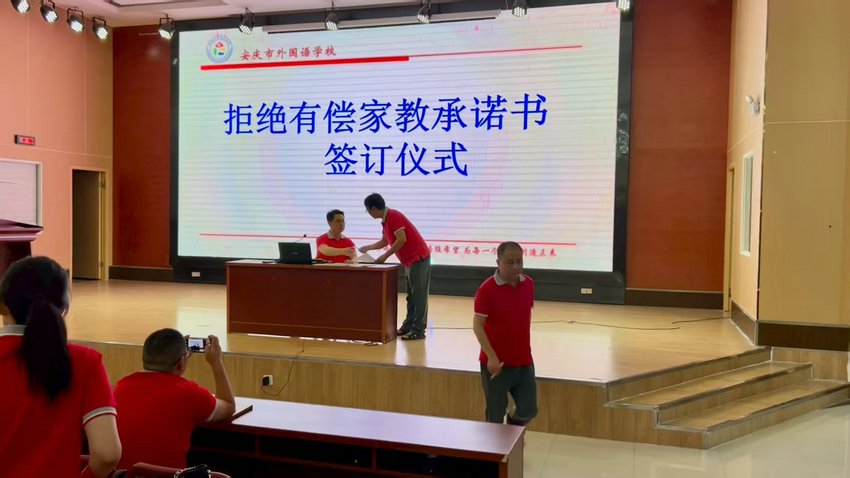 有偿家教不仅违背教育公平原则,打破了 “教育面向全体学生” 的基本准则,更会损害教师队伍的整体形象与职业声誉,对校园风气和学生价值观形成不良影响。此类行为在加重学生课业负担与家庭经济压力的同时,也容易让教师分心于校外利益,忽视校内本职教学工作。全体教师应当时刻绷紧 “廉洁从教” 这根弦,坚决守住教育初心,自觉抵制各类有偿家教行为。作为高中阶段的教育工作者,应将全部精力聚焦于校内教育教学,通过优化课堂设计、提升教学效率、做好课后答疑辅导等方式,充分满足学生的学习成长需求。在全体教师的共同见证下,大家郑重签下自己的姓名,签订《拒绝有偿家教承诺书》。承诺书明确要求,教师不得组织、参与任何形式的有偿家教活动,不得介绍学生参与校外有偿补课,主动接受学校、家长及社会各界的监督。
