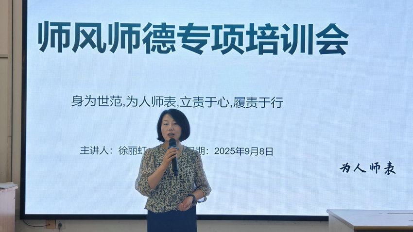 为进一步加强教师队伍建设,提升教师职业道德素养,2025年9 月7日,初中部东区召开师德师风教育专项培训会,为新学期教育教学工作的有序开展奠定坚实基础。