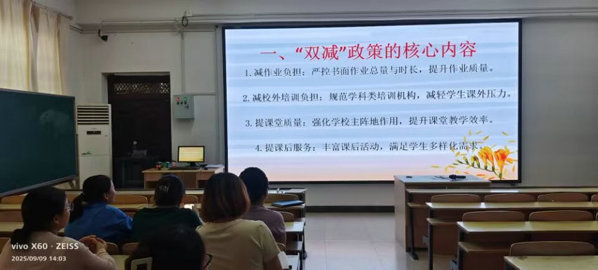 为深入贯彻落实“双减”政策要求,进一步提升英语教学质量,9月9日下午,我校初中部东区英语组全体教师开展了“双减”政策专题学习与研讨活动。