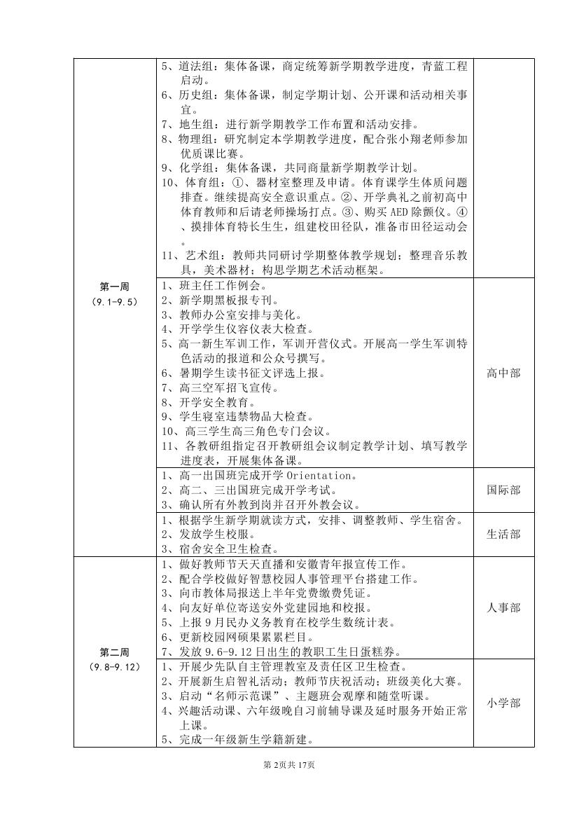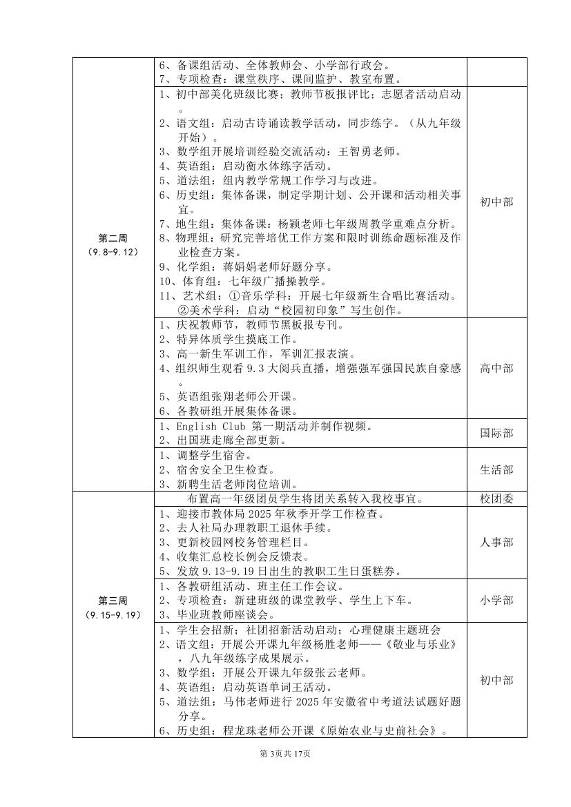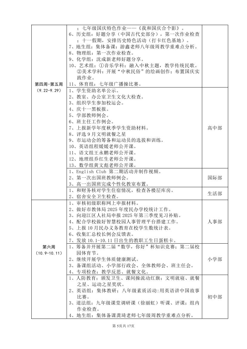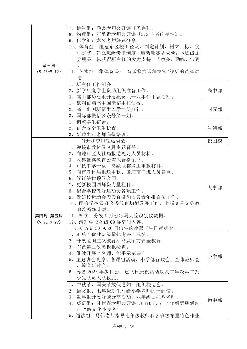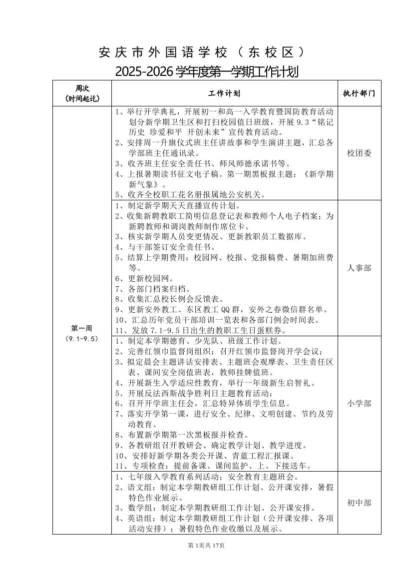 2025-2026学年度第一学期工作计划(东区)