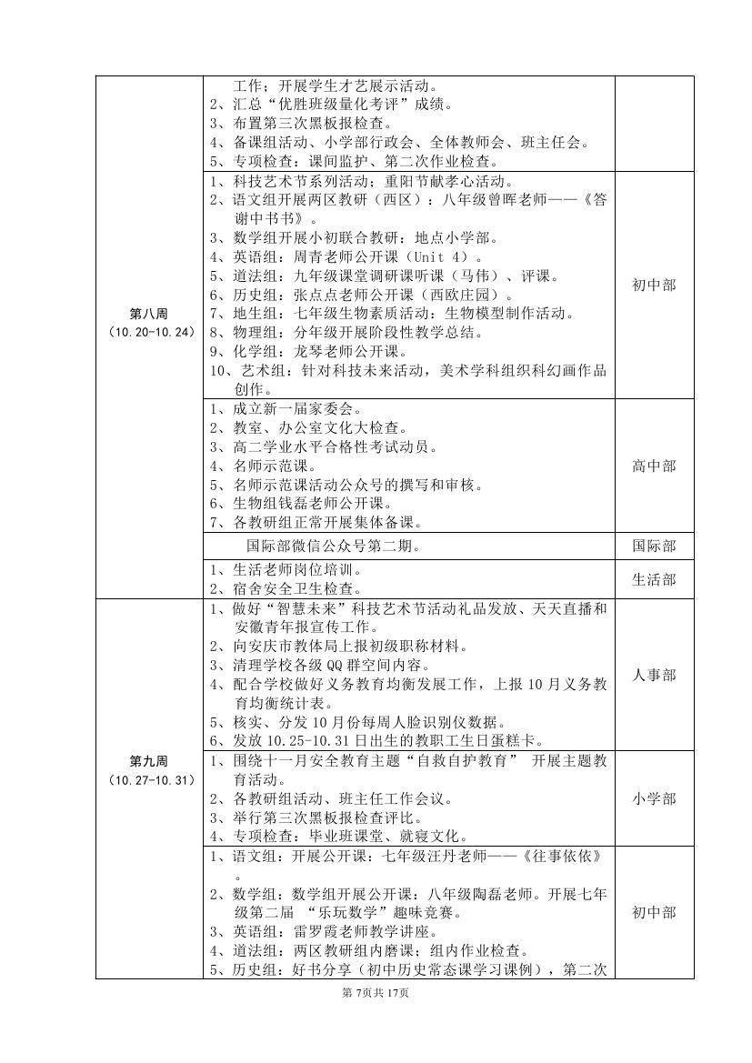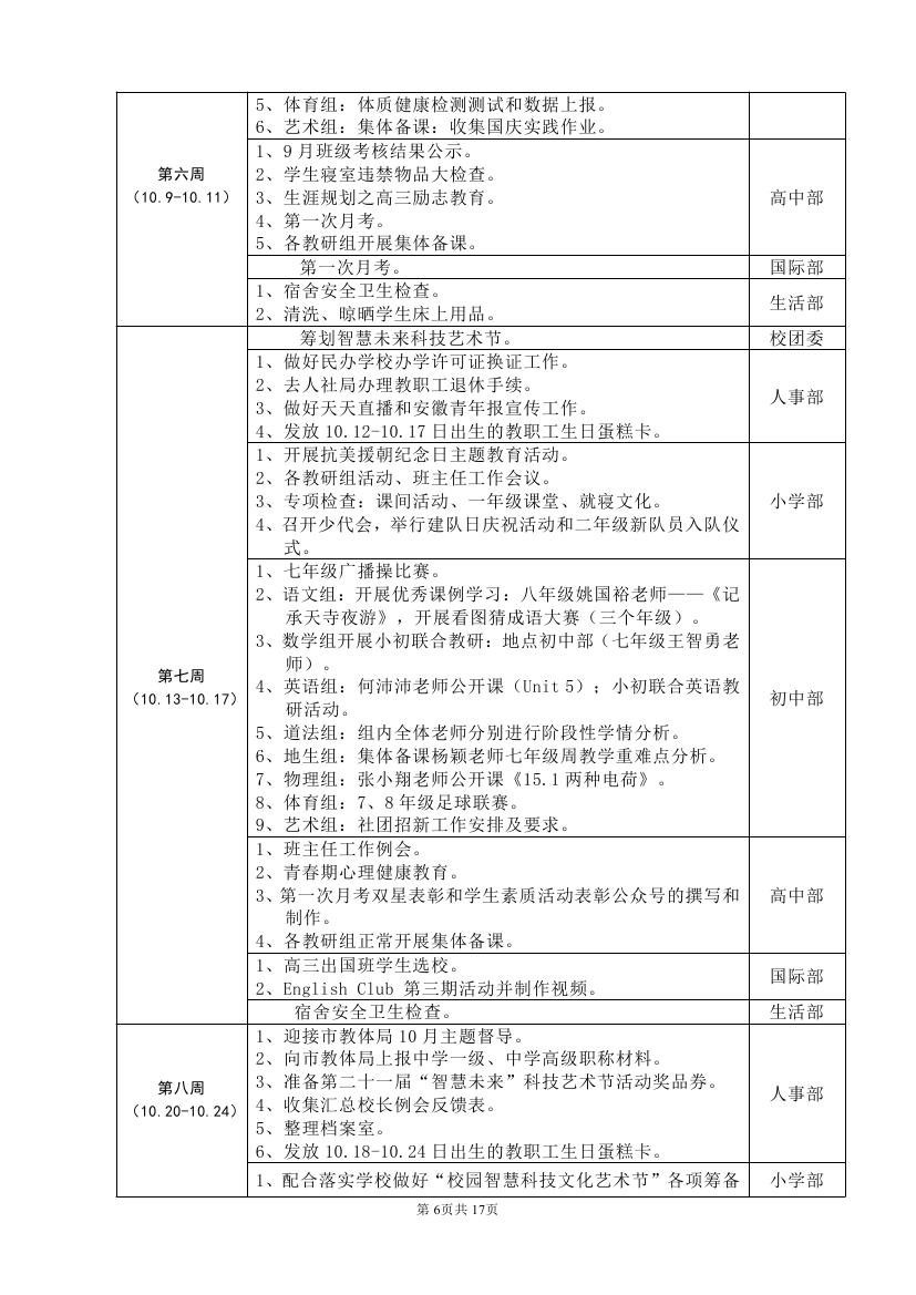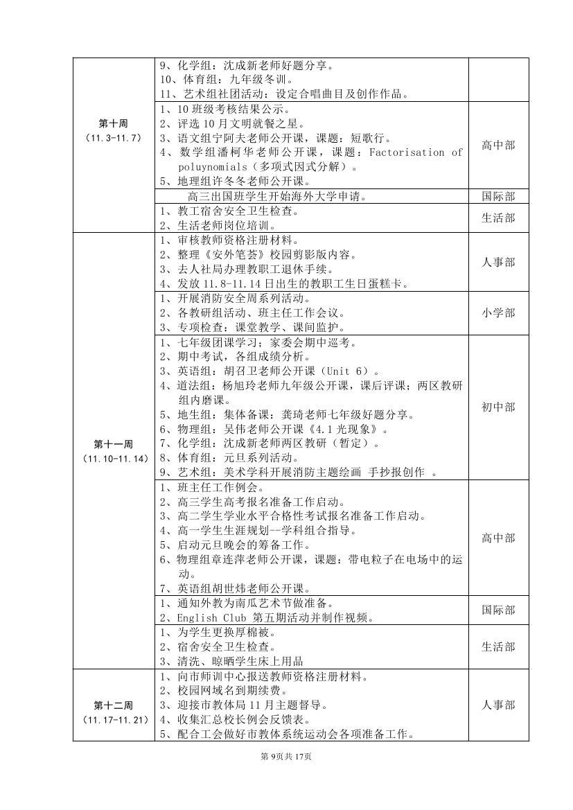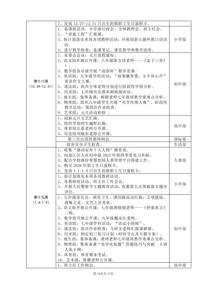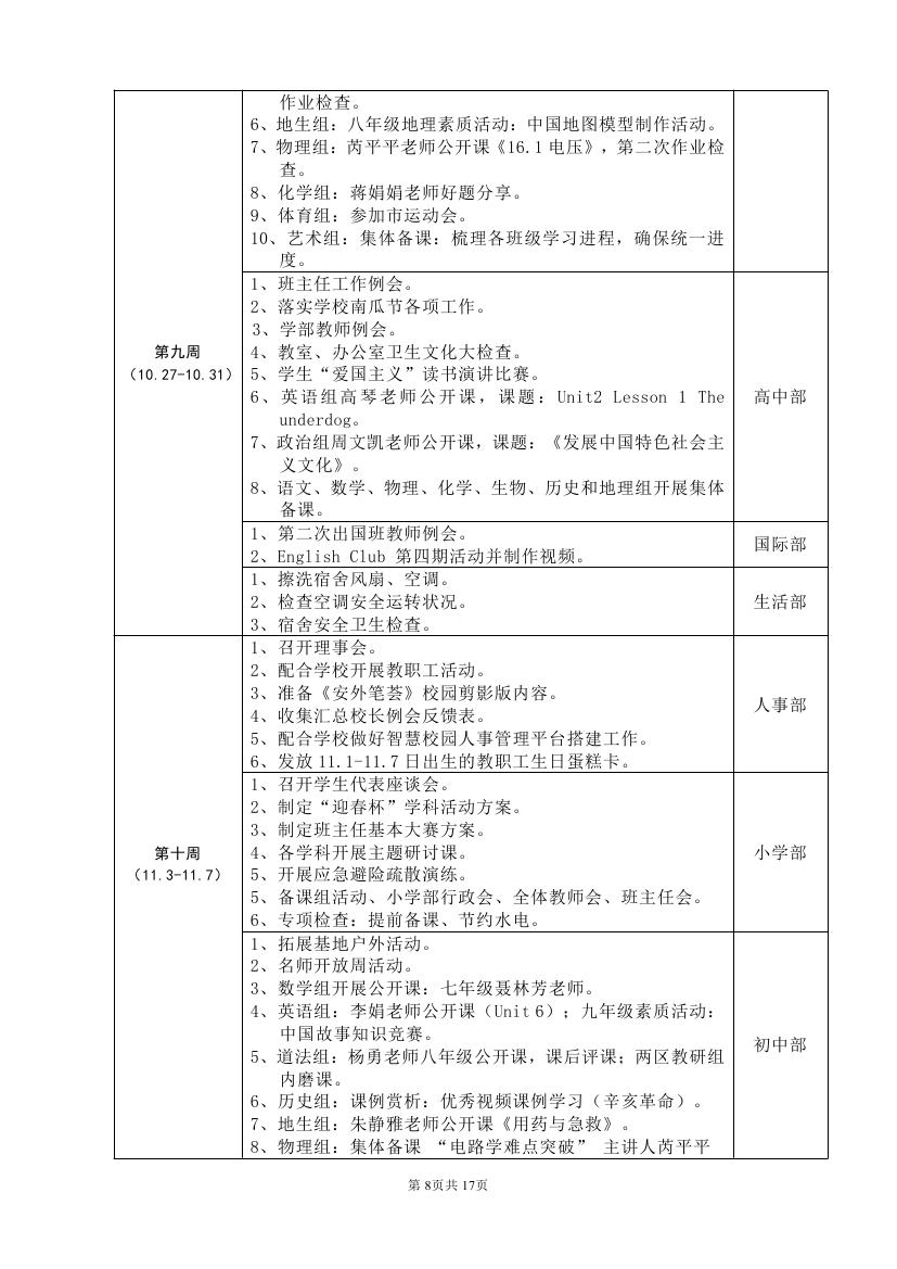 2025-2026学年度第一学期工作计划(东区)