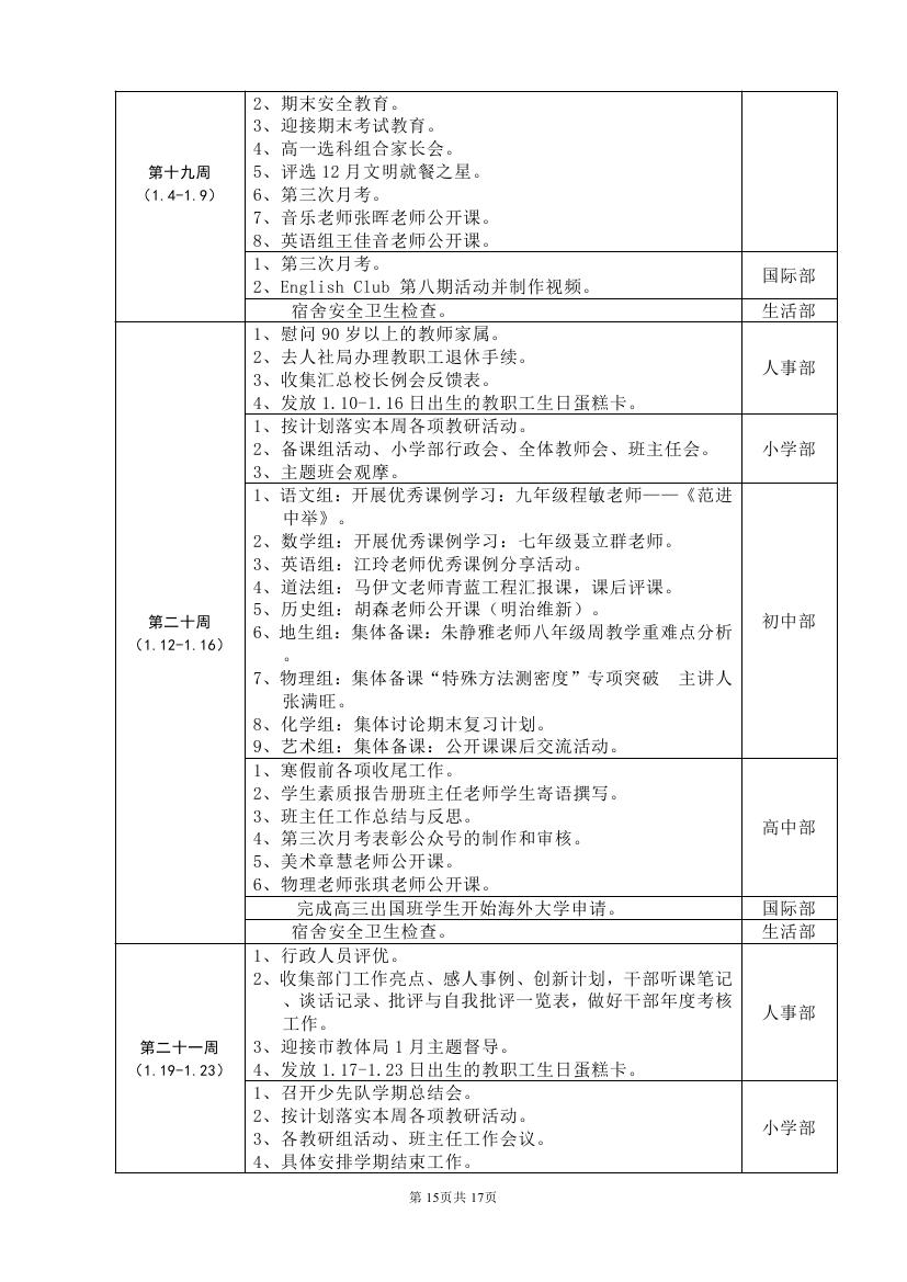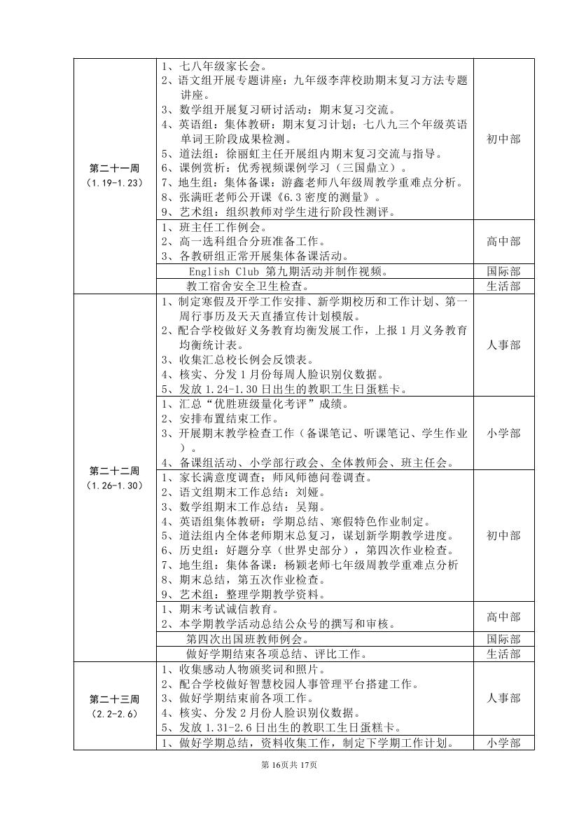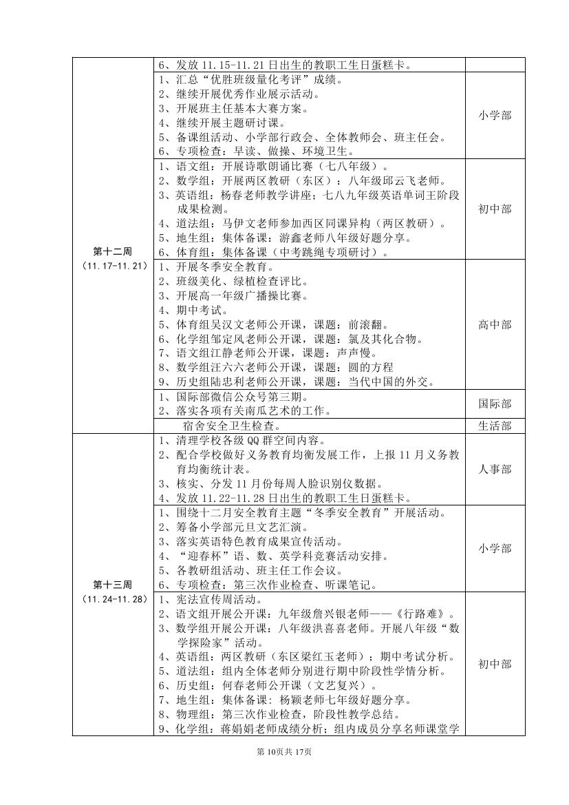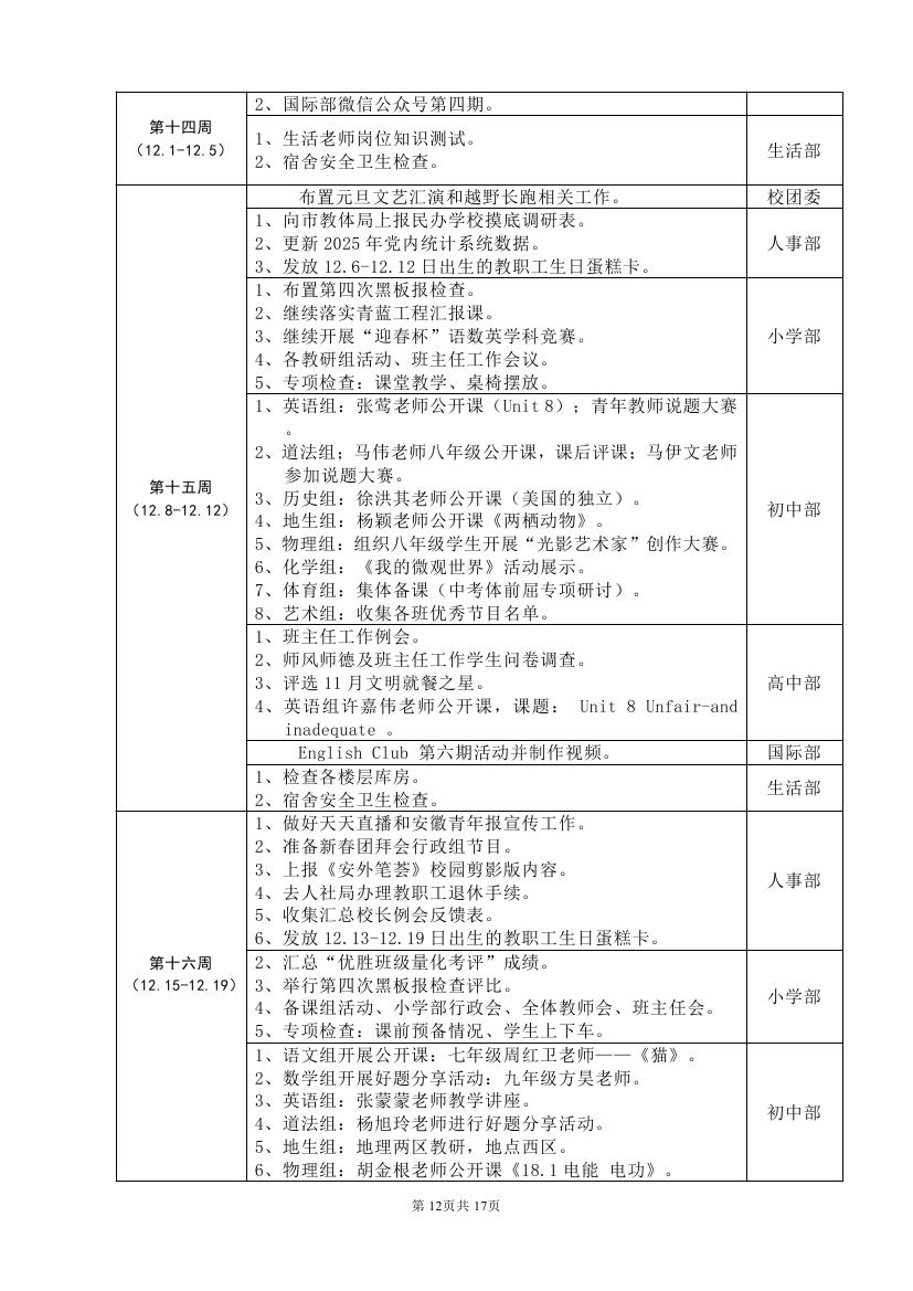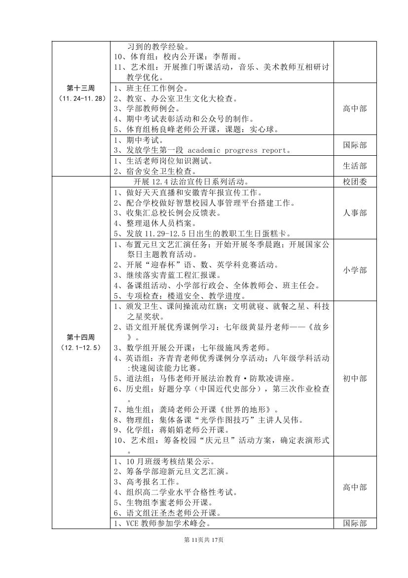 2025-2026学年度第一学期工作计划(东区)