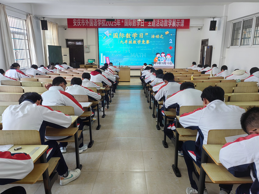 为庆祝国际数学日,我校初中部东区九年级数学竞赛在合班教室隆重举行。来自九年级的数学精英齐聚一堂,展开了一场智慧与思维的激烈碰撞。