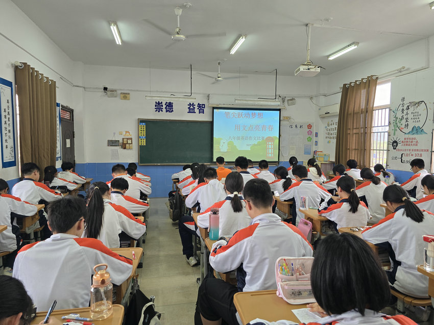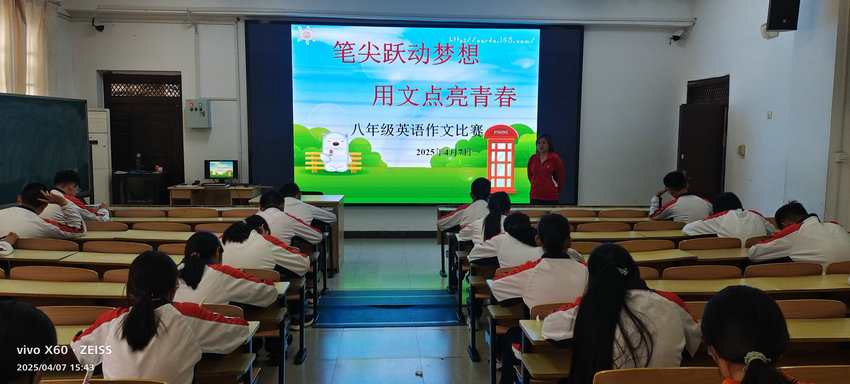 为提高学生的英语写作能力,激发英语学习兴趣,营造良好的校园英语学习氛围,安庆市外国语学校初中部东区初二英语组在合班教室成功举办了以“笔尖跃动梦想,用文点亮青春”为题的英语现场作文比赛。本次活动由初二英语教研组精心策划,全年级学生积极参与,展现了扎实的语言功底和独特的创作思维。