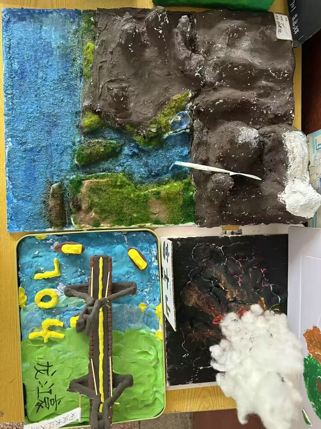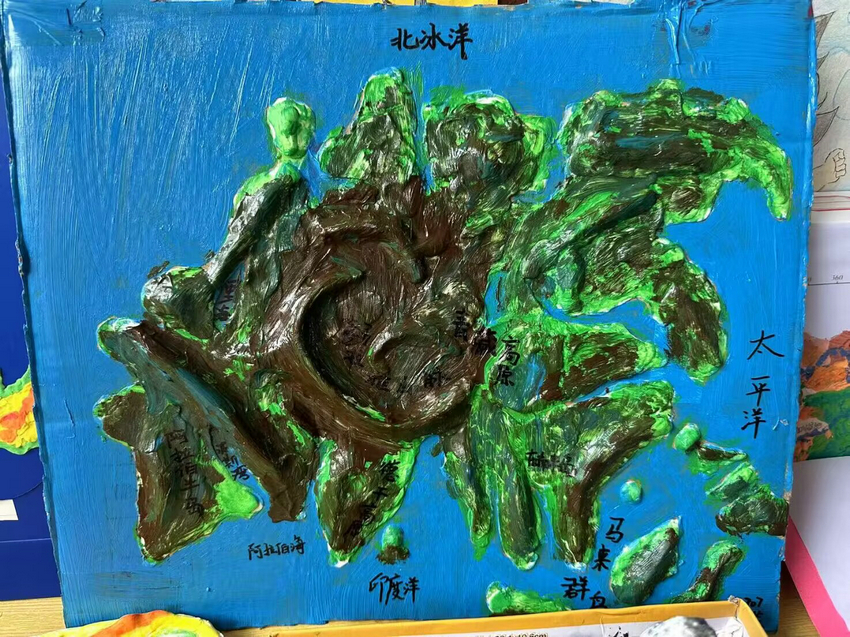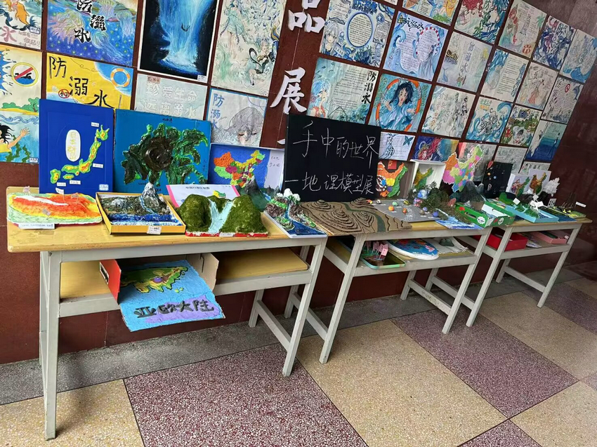 为庆祝建校21周年暨“5.18”校庆日,安庆市外国语学校西区七年级全体学生在地理组教师的精心指导下,开展了以“手中的世界”为主题的地理模型创作活动。同学们以黏土、橡皮泥为“画笔”,废旧纸板、尺子、牙签等为“调色盘”,将课本中的地理知识转化为立体生动的艺术作品。从经纬交错的地球仪,到层峦叠嶂的地表形态;从轮廓鲜明的大洲版图,到独具特色的地貌模型,每件作品都凝聚着学生对地理知识的深刻理解。