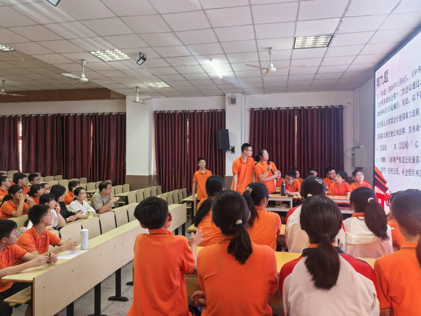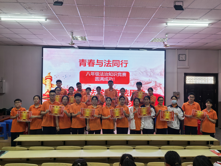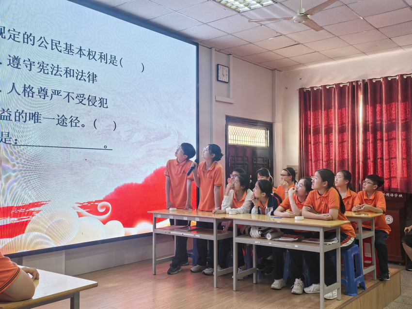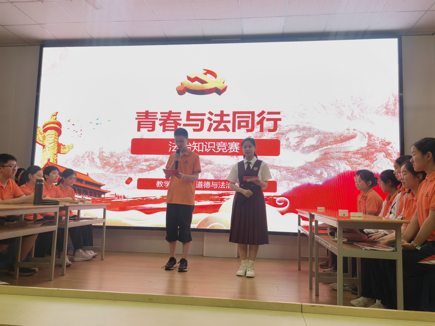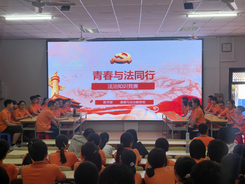 6月4日下午,安庆市外国语学校西区一楼报告厅气氛热烈,八年级“青春与法同行”法治知识竞赛在这里精彩上演。此次活动在校领导的支持下,由学校道法组全体老师精心组织,旨在增强学生的法治意识,普及法律知识。