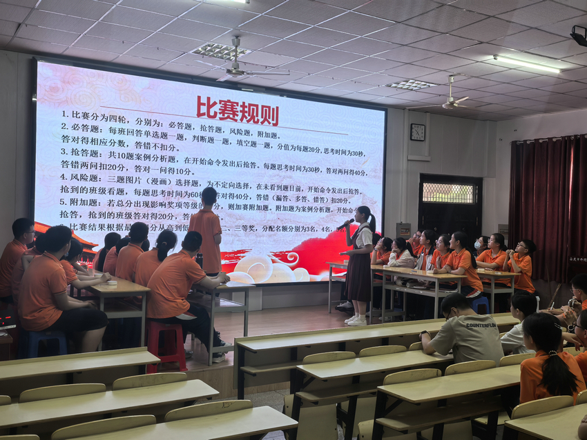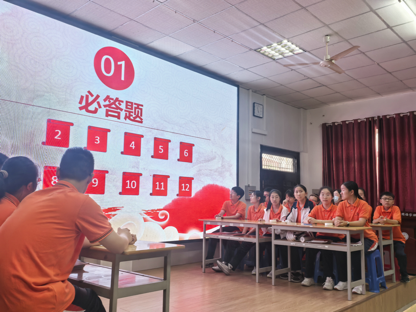 进入抢答题环节,现场气氛瞬间被点燃。选手们眼疾手快,迅速按下抢答器,有的班级选手凭借快速的反应和准确的回答赢得阵阵掌声;有的班级则因抢答失误而懊恼,但很快又重振精神投入下一题。