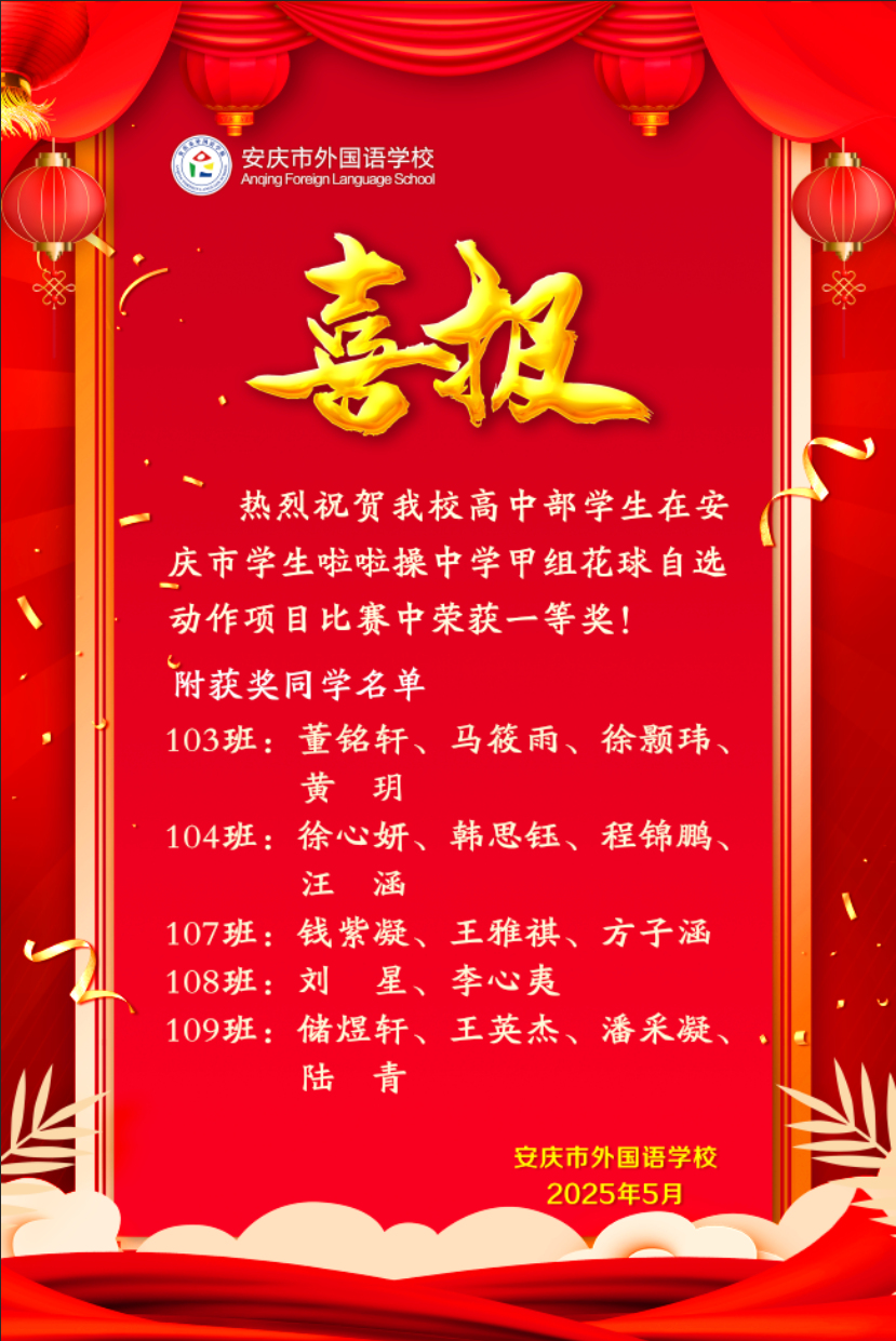 安庆市学生啦啦操中学甲组花球自选动作项目比赛获奖喜报