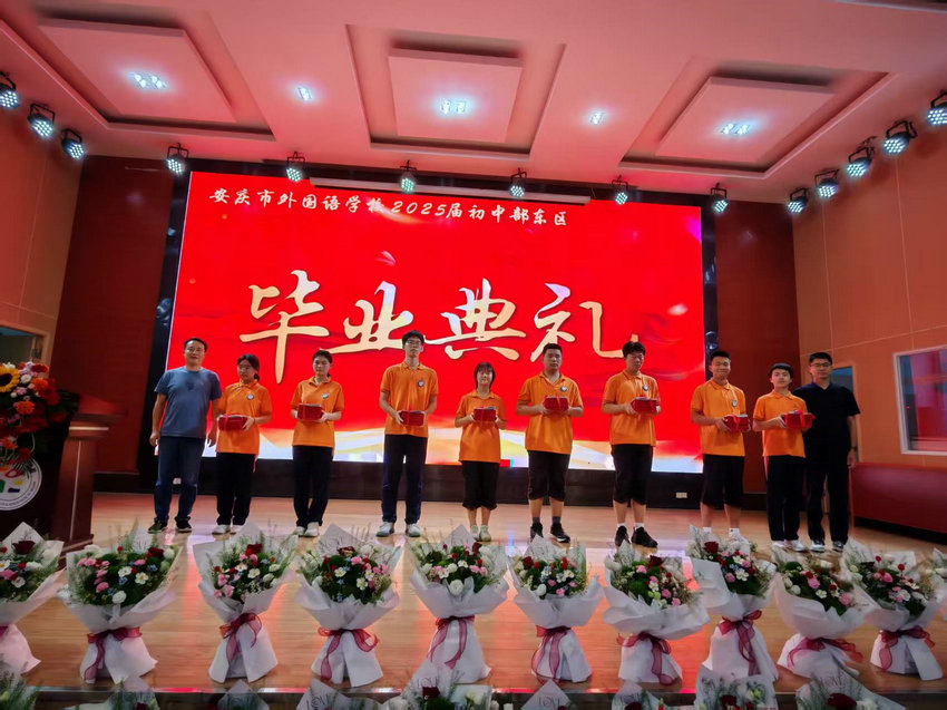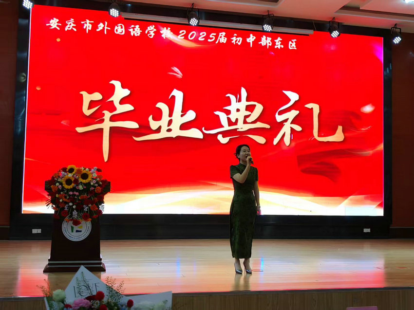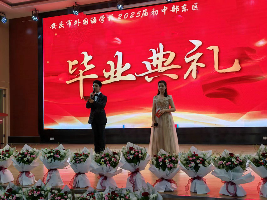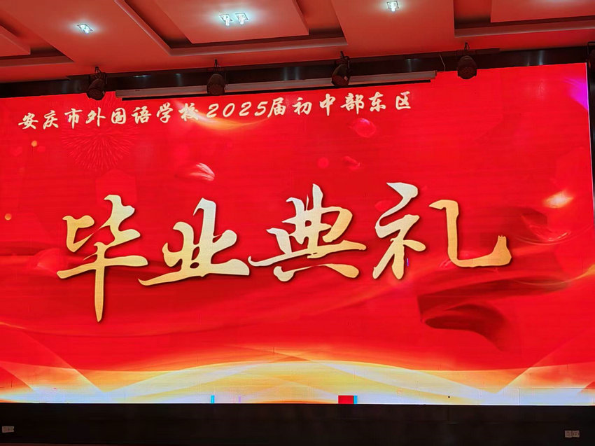 2025年6月12日下午,安庆市外国语学校初中部东区2025届九年级毕业典礼在学校报告厅隆重举行。全体师生及家长代表齐聚一堂,共同见证这一难忘时刻。
