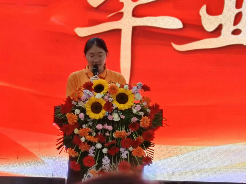 下午两点,典礼在庄严的国歌声中拉开帷幕。一段记录青春成长的视频带领大家重回初中三年的美好时光,引发阵阵共鸣。903班王梦涵作为学生代表发言,满怀深情地回望成长又坚定有力笃行未来。李娟老师代表全体教师为亲爱的学生们送上最真挚的祝福,希望他们带着师长的期望、同窗的情谊奔赴属于他们的星辰大海。904班邹闻同学的家长陈霞作为家长代表发言,她首先表达了对学校和老师的感激之情,作为家长她看到孩子用坚持证明了自己的成长,希望孩子能永远保持热爱、勇敢向前。
