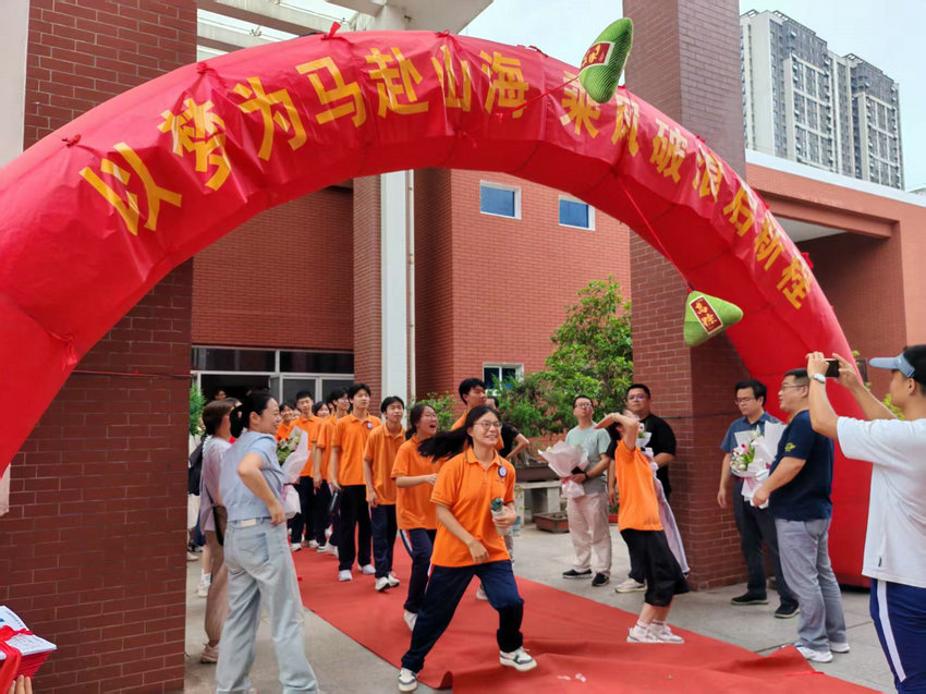 在《骄傲的少年》的旋律中,同学们带着老师、家长的祝福与期望昂首走过状元门、奋起跳摸高粽开启自己的人生新征程。